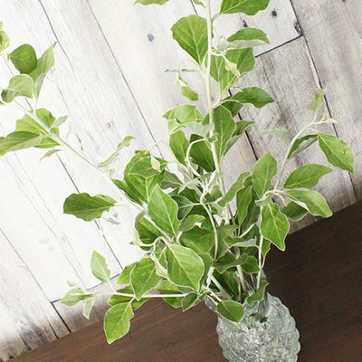 グミ特有の乾燥に強い丈夫な性質を持っています。葉裏がシルバーで美しく葉は丸みを帯びています。春には黄色い花を咲かせ、秋には赤いみをつける落葉樹です。